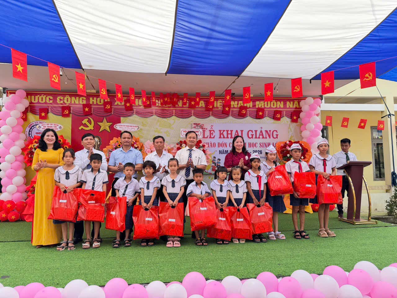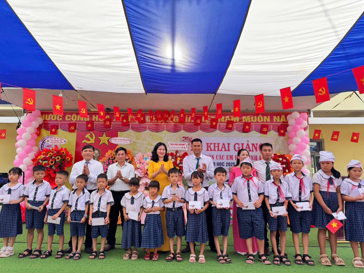 Nhân lễ khai giảng năm học mới, các cấp lãnh đạo và các mạnh thường quân cũng có các phần quà thật ý nghĩa để trao tặng cho những em có hoàn cảnh khó khăn, biết cố gắng vươn lên trong học tập để tạo nguồn động lực cho các em đến trường.